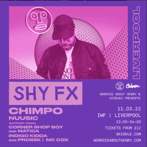 11/3, Liverpool. WAH: Shy FX, Chimpo, Nuusic @ Invisible Wind Factory