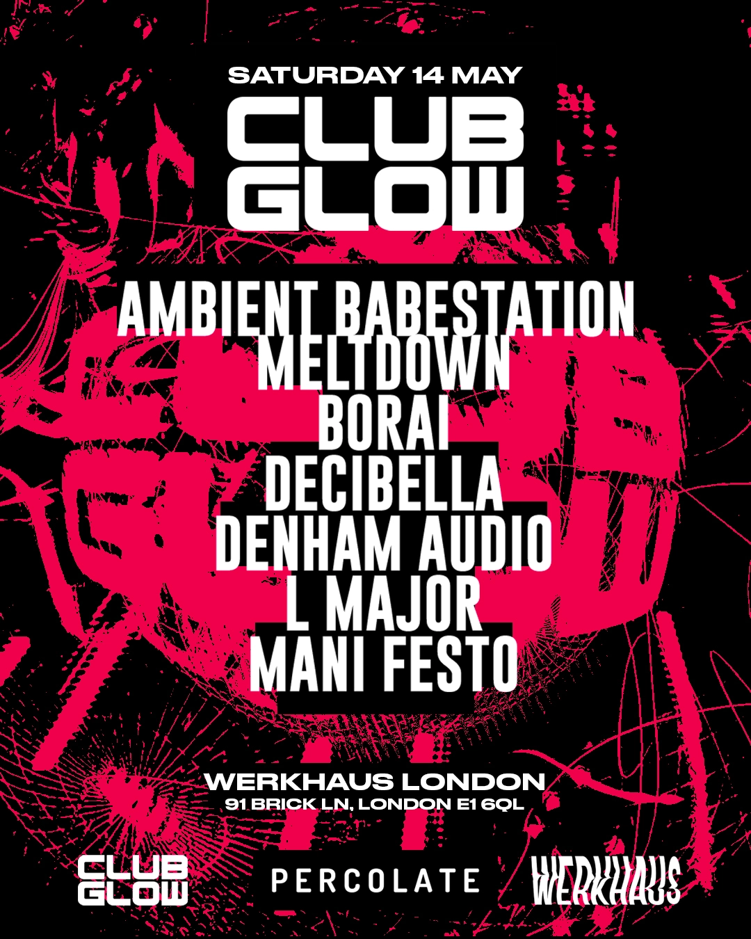 The full Club Glow crew in effect with Ambient Babestation Meltdown, Borai, Decibella, Denham Audio, LMajor & Mani Festo joining us all night.