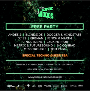 15/1, Liverpool. The One in the Woods free party @ Invisible Wind Factory Substation