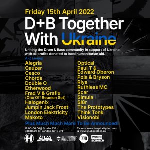 We have already seen the power of the D&B community through the success of the compilation album ‘Together with Ukraine’, which has raised over ยฃ85,000 in under 2 weeks and features over 130 exclusive tracks.
