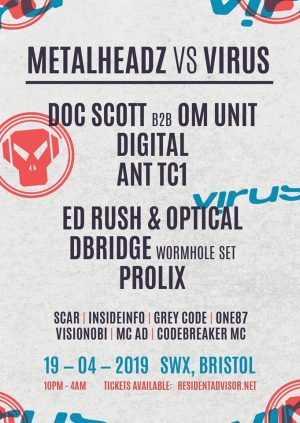 🔊🔊🔊 Metalheadz and Virus Recordings come together for the first time on 19.04.19 in Bristol’s revered SWX space, bringing a huge line-up of new and familiar faces from each imprint to the fore.