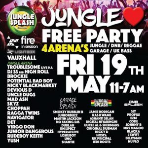 We continue our series of FREE events @Fire & Lightbox complex as we bring you 4x Arenas of pure raving bliss, Jungle will host the main arena with a 100% Jungle sound while in the other three arenas we have Garage / Bass / DnB / Reggae, with line ups in all arenas that will guarantee a night of perfect raving and will keep the dancefloor full till the sun comes up, we rave from 10pm till 7am so grab a friend or come alone and join us on the dancefloor.