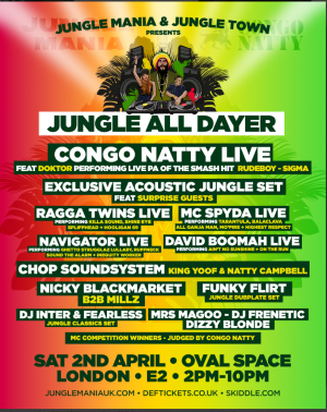 Jungle Mania & Jungle Town join forces to present the Congo Natty Jungle All Dayer in the heart of East London (E2) at the amazing Oval Space venueโฆ
