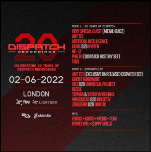 Join us on 2nd June (Bank Holiday Thursday / No Work Friday) as we celebrate 20 years of Dispatch Recordings