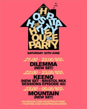 Dilemmaย will be kicking things off in style from 9pm (BST),ย Keenoย takes to the controls at 10pm (BST) with a huge Bristol Mix Sessions Episode 40 set and Mountain takes us all the way to midnight, shutting your houses down with a bang!ย 💥