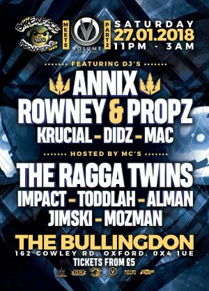 On Saturday January 27th Volume Dnb & Skrewface Promotions team up to present part 2 of a 2 part event special, at Oxfordshire’s number 1 club for Drum & Bass, The Bullingdon Nightclub Oxford, Cowley Road!