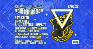 27/5, London. blueprint presents: the big rewind with Bryan Gee, Ray Keith, T>i b2b Critical impact @ E1