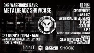 For our opening party, weโ€™re bringing down legendary DNB label Metalheadz to Mint Warehouse for a Drum & Bass Warehouse Special! Metalheadz, established by a pioneer in the scene (aka Goldie), are returning to Leeds which will feature the likes of Ed Rush (SPECIAL GUEST!), Grooverider, Artificial Intelligence, Ant TC1 & Diverge. The Metalheadz cru will be supported by upcoming dnb duo Deadline & our resident DJs S.P.A! Our friends at Shook Events will be delivering a UK funky, grime & bass takeover special in room 2!