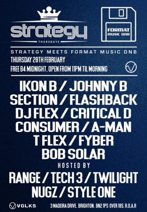 Come to the Volks on Thursday 28th February for the combination of Strategy and Format Music D&B presenting a night of Drum n Bass fun and dancing. Free entry before midnight with good vibes and all night skanking including with shot giveaways on the night. We will also be celebrating Ikon B’s Birthday (one of our DJ’s) for added fun and good times. Good vibes all around with all night raving.. See you on the dance floor.. :) x