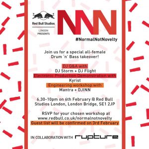 On Tuesday February 6 #NormalNotNovelty comes to Red Bull Studios London with a special series of talks and workshops dedicated to women working in drum ‘n’ bass, curated by London promoters Rupture.