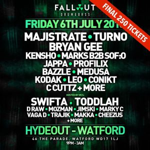 Fallout DnB returns to Hydeout Watford! We’ll be hosting 3 HUGE events across summer at Batchwood with some of the BIGGEST Names in DnB. We’ll also have our resident DJ’s & upcoming talent hosting room 2.