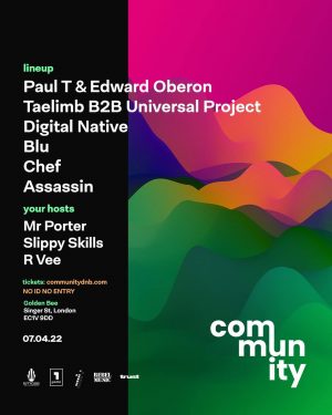 Community returns to a brand new venue and we couldn’t be more exited. Golden Bee has killer Funktion-one sound and some awesome cocktails!