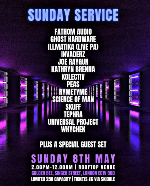 A massive line up as residents Fathom Audio are joined by Ghost Hardware, Illmatika (Live PA), Invaderz, Joe Raygun, Kathryn Brenna, Kolectiv, Peas, Rymetyme, Science Of Man, Skuff, Tephra, Universal Project, Whchek and a Special Guest!