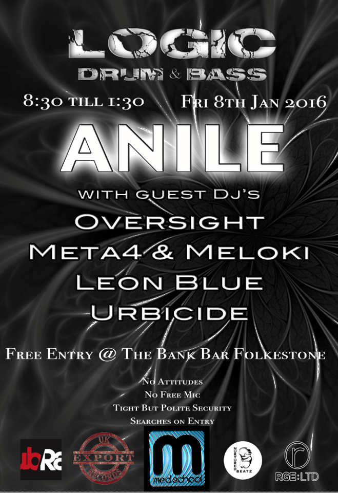 8/1, Folkestone. Logic presents Anile @ Bank Bar