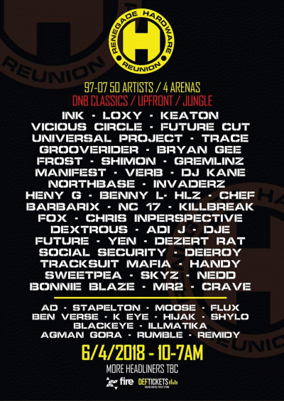 BUY Ticketsย https://www.deftickets.co.uk/events/renegade-hardware-reunion-06-04-2018